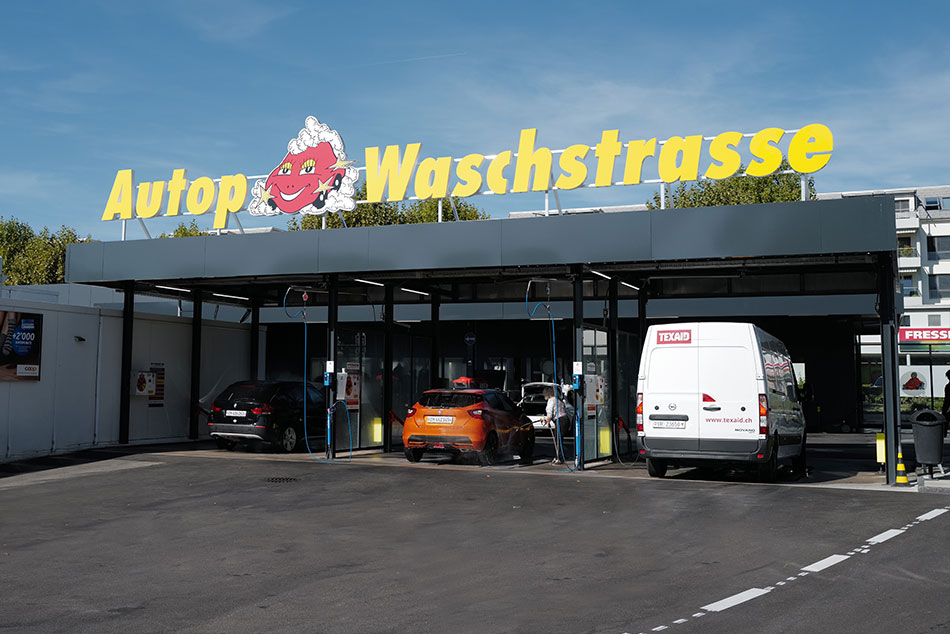 - Bediente Textile Waschstrasse mit Staubsaugen inklusive